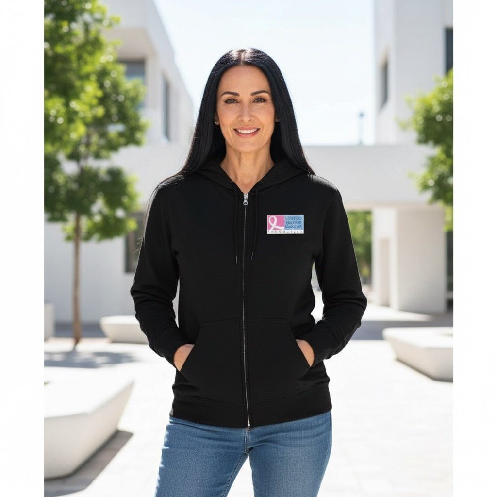 Purchase of this cozy zip-up hoodie supports individuals and families affected by breast cancer. Your generosity fuels vital programs—providing financial aid, emotional support, and essential resources to survivors and fighters on their journey.